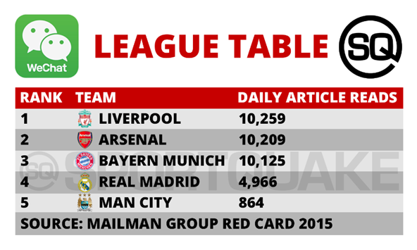 With just 20,000 connections so far, this number can be expected to rise rapidly as Man Utd catch up with leading WeChat teams Liverpool, Arsenal and Bayern Munich.
