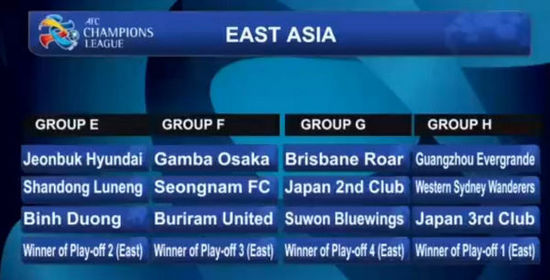 The draw for the 2015 AFC Champions League has been completed in Kuala Lumpur, Malaysia. Chinese champions Guangzhou Evergrande fell early in this year's knock-out stage, and they will have another chance to redeem themselves.