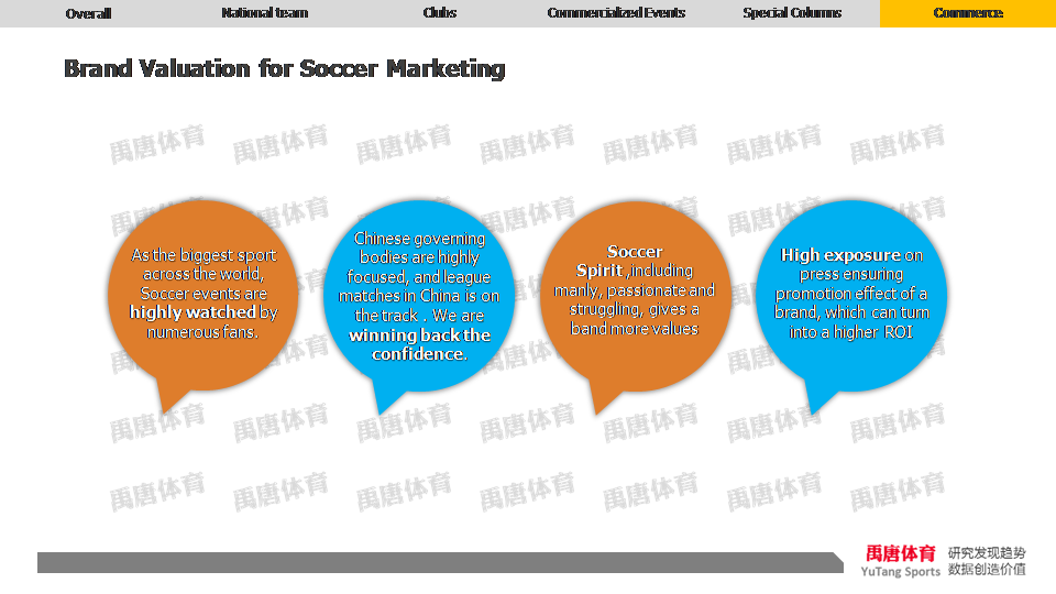 This last part of the report describes the commercial side of soccer in Chinese market. To be specific, about its commercial value, market appeal, and sponsorship values.