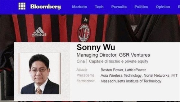 Sonny Wu, managing director of GSR Capital, is the main investor in the consortium which will take AC Milan out of the hands of Silvio Berlusconi and Fininvest, according to several media reports.